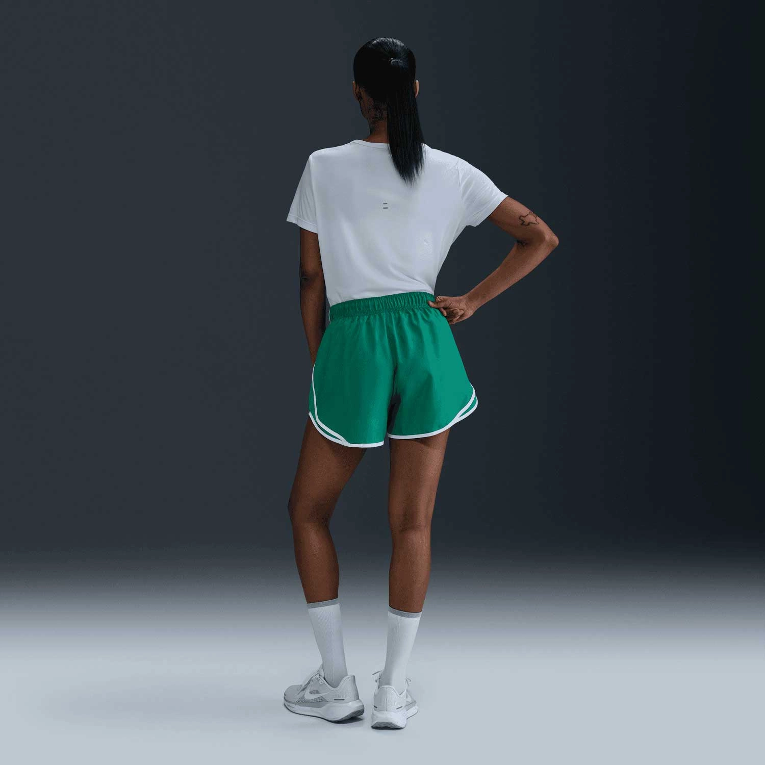 Znajdź swój rytm w koszulce Tempo. Stylowy materiał odprowadzający wilgoć odpowiada za suchość i ochłodę. Dopasowany krój w talii i mniejsza liczba szwów pomagają zmniejszyć ryzyko otarć, dzięki czemu możesz cieszyć się wygodą podczas treningu.