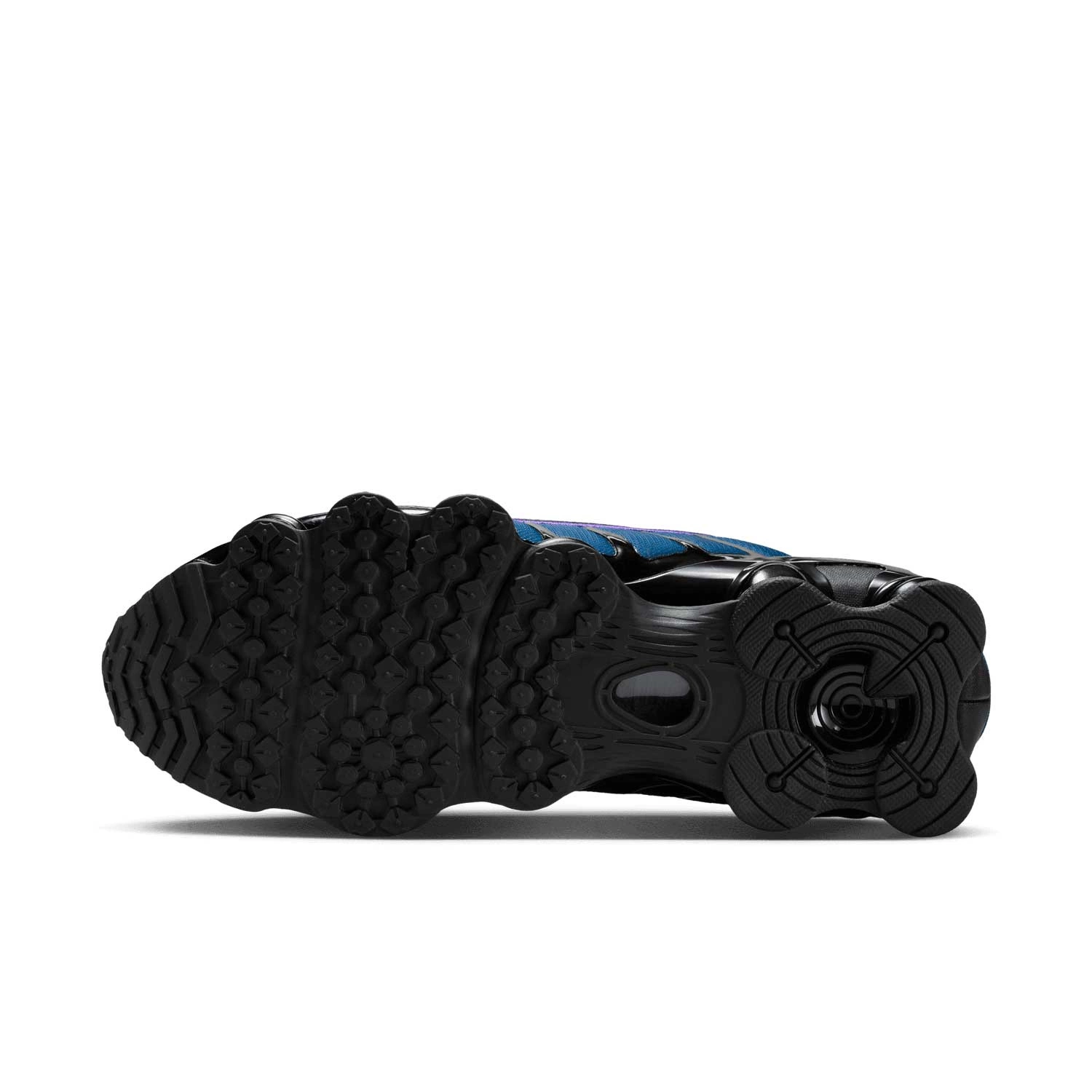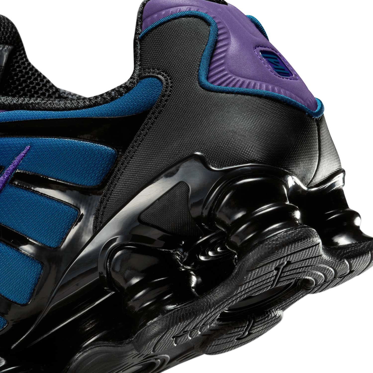 - Płytka TPU umieszczona w obszarze pięty, pomiędzy podeszwą środkową a technologią Nike Shox, odpowiada za boczne wsparcie i stabilizację.