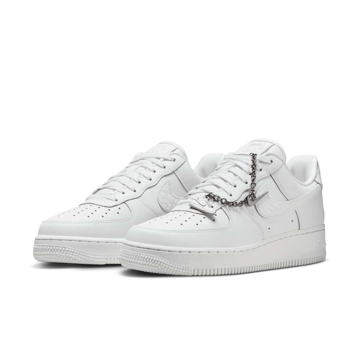Wygodne, trwałe i ponadczasowe – nie bez powodu są numerem jeden. Air Force 1 łączą klasyczny fason z wysokiej jakości skórą, nadając butom schludny, minimalistyczny wygląd. Ta wersja posiada srebrny łańcuszek i zawieszki, które podkreślą Twój styl.
